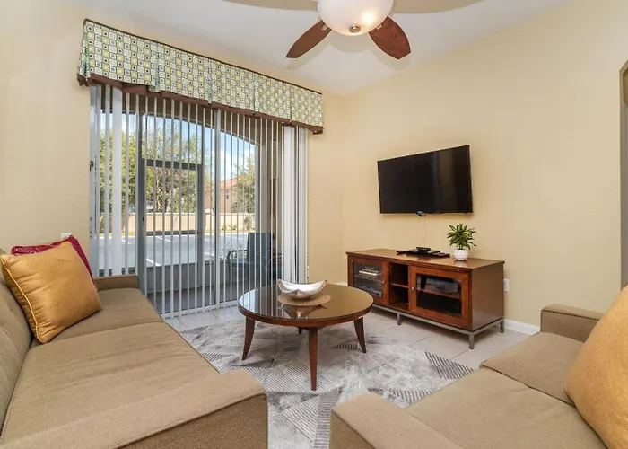 A esta propiedad se llega en coche en 33 minutos desde el aeropuerto Internacional de Orlando.